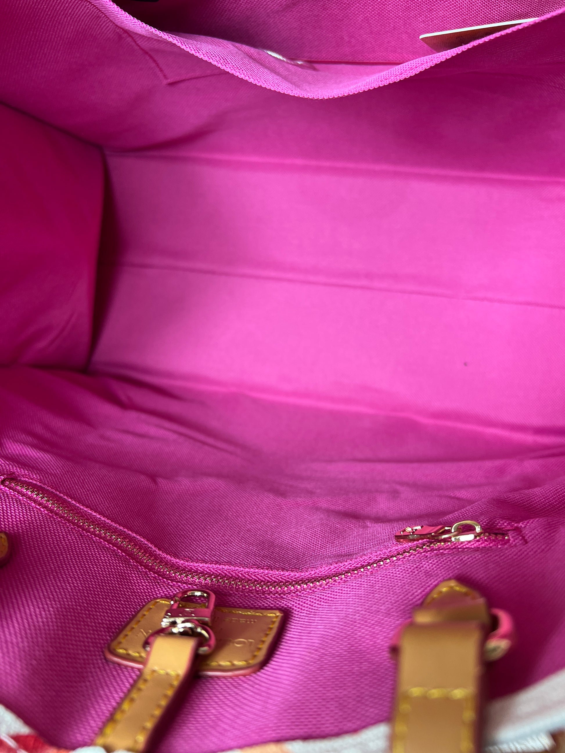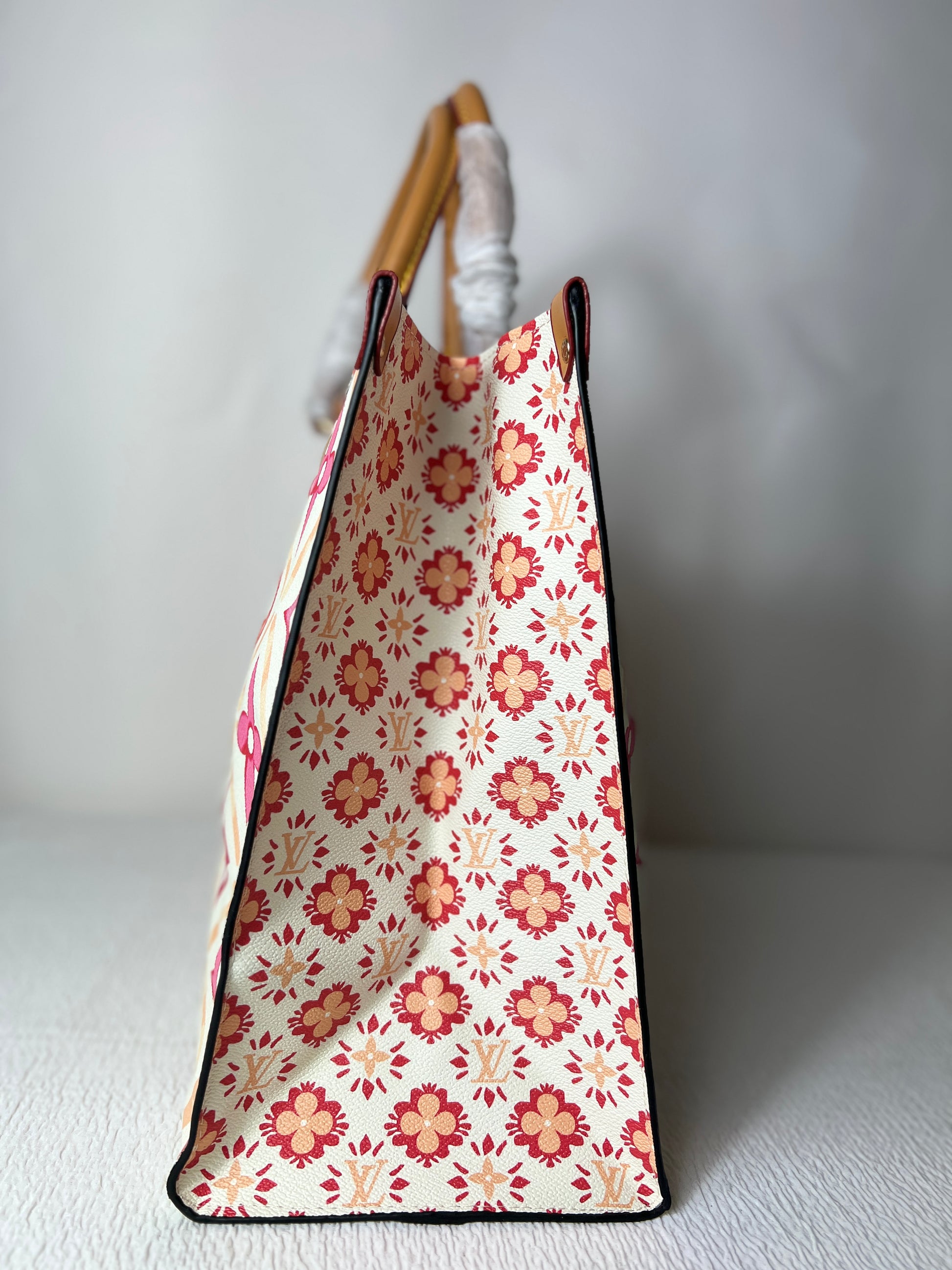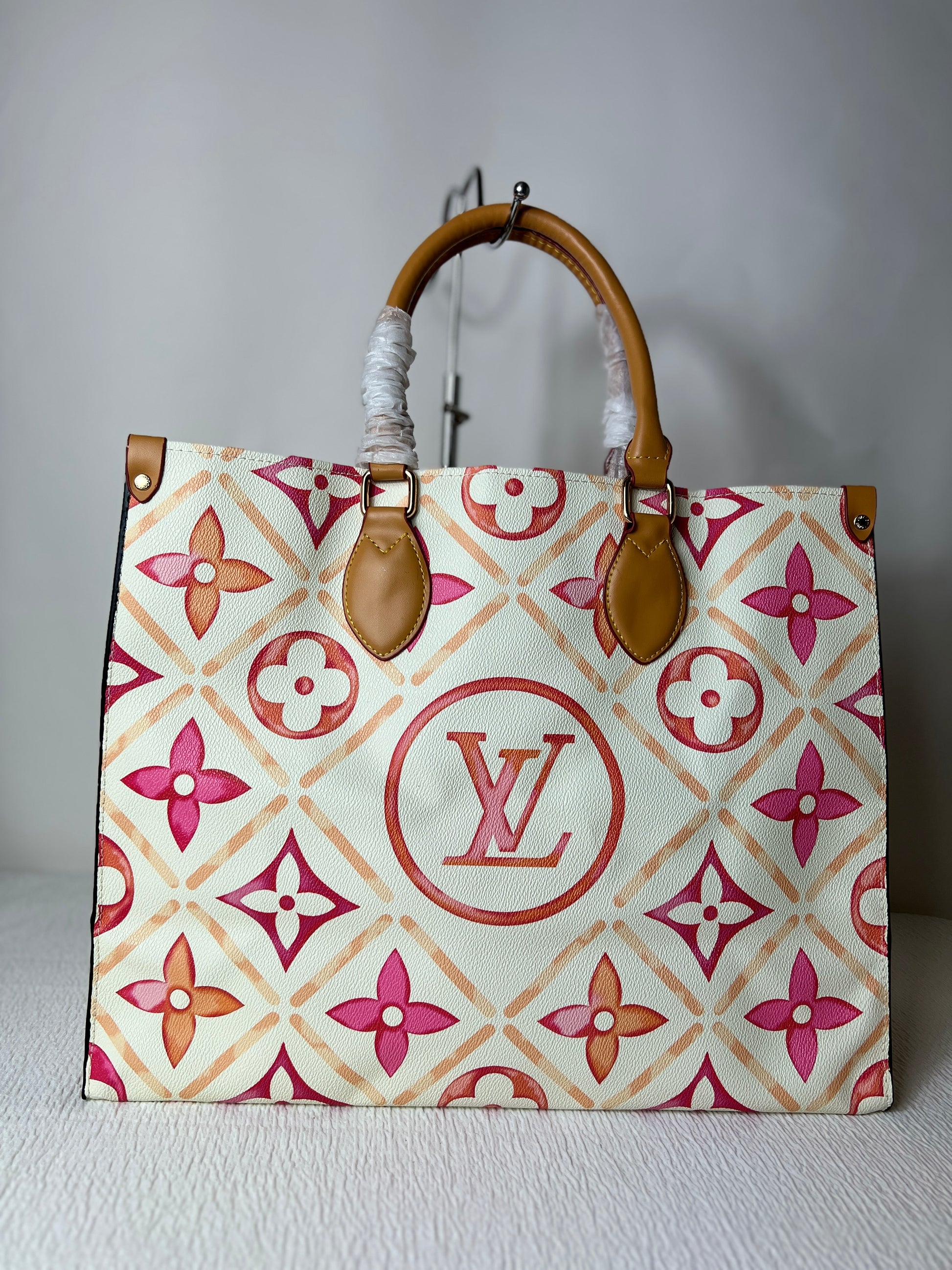 This bag is great for spring summer outings very spacious. It has two attached shoulder straps for your comfort.